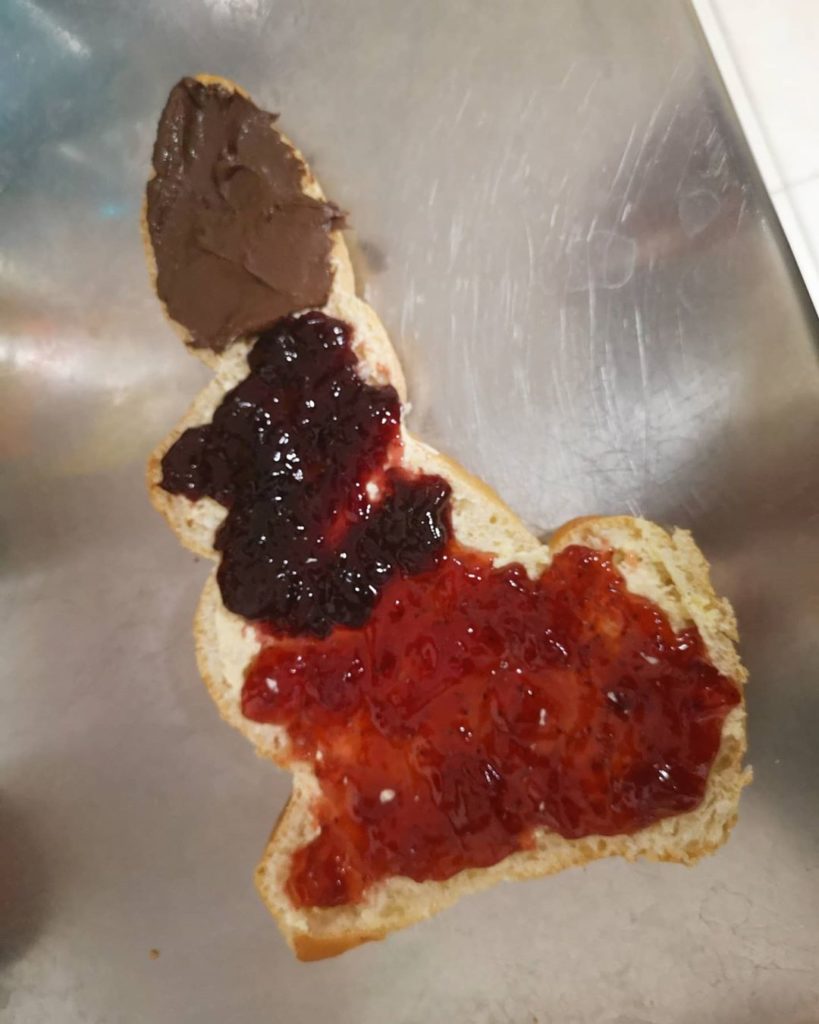 My bunny🐇 snack for this night🌃, with nougat🍫, strawberry🍓 and blueberry💜 jam.😍✨