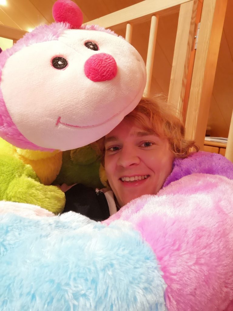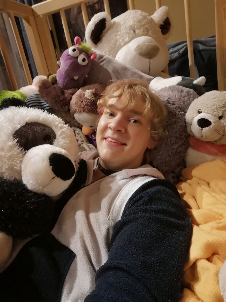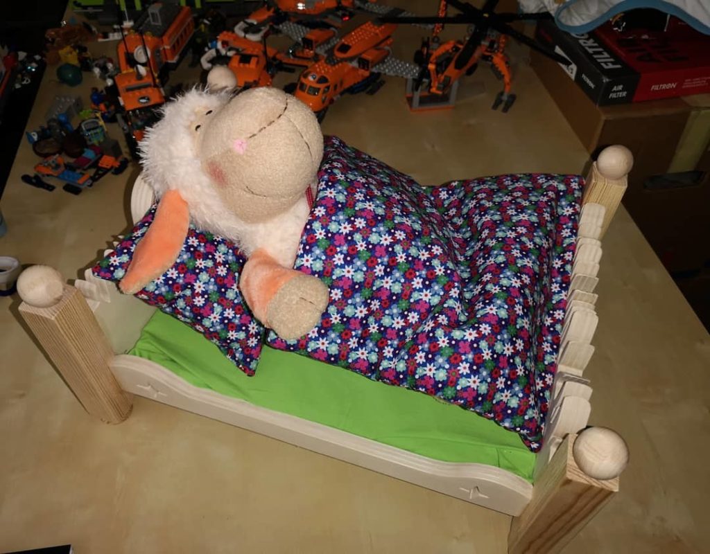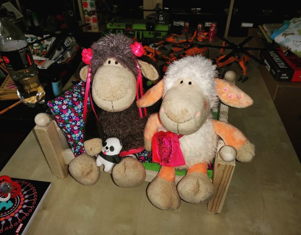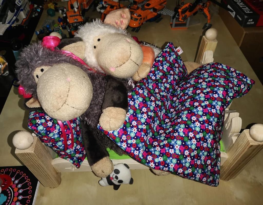 The grey sheep is his. Ashley, is on holiday by my side and the two girls share nearly everything, also my wooden bed.🐑🛏️🐑
