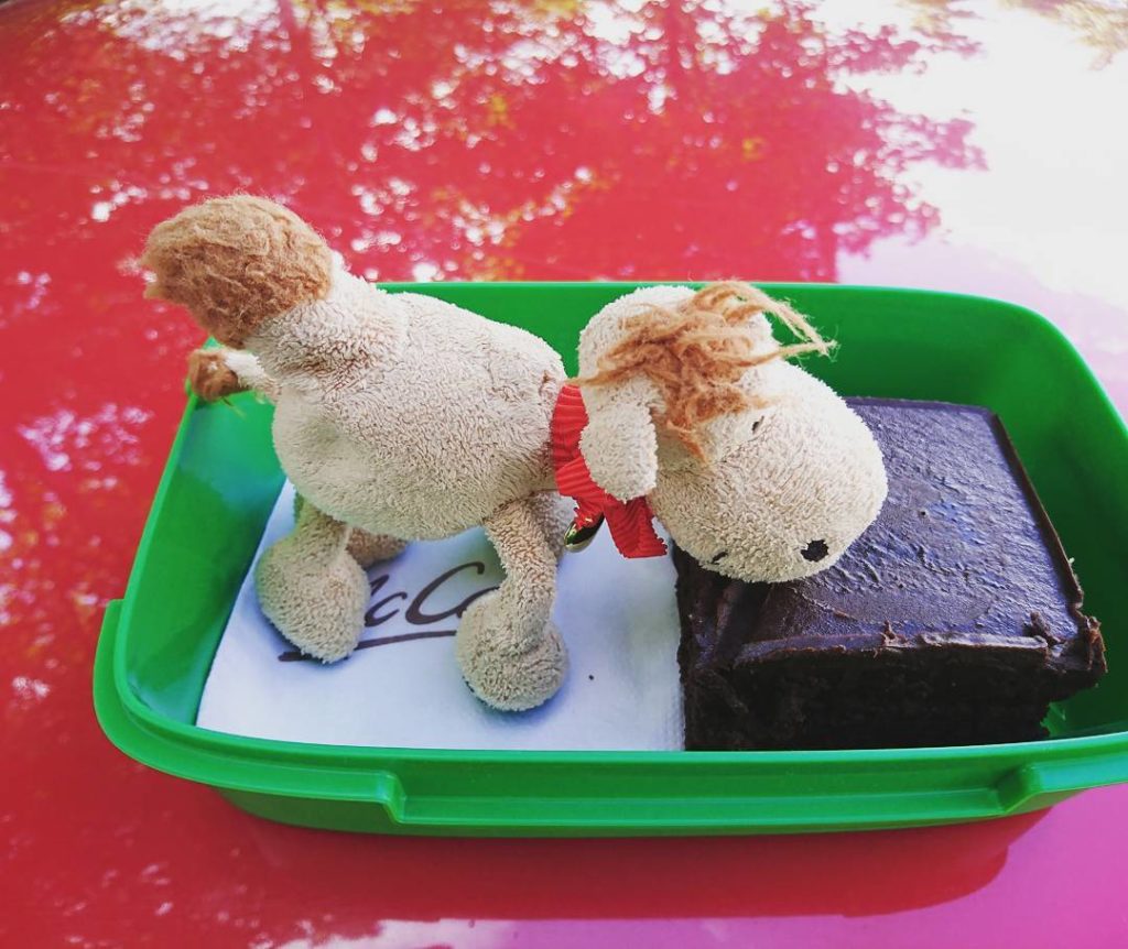 It was a normal Friday, it’s cakeday, says the Dromedary. Because I visited friends in Austria and therefore had no time to bake, there was McDonald’s chocolate cake from the box for my Honey.