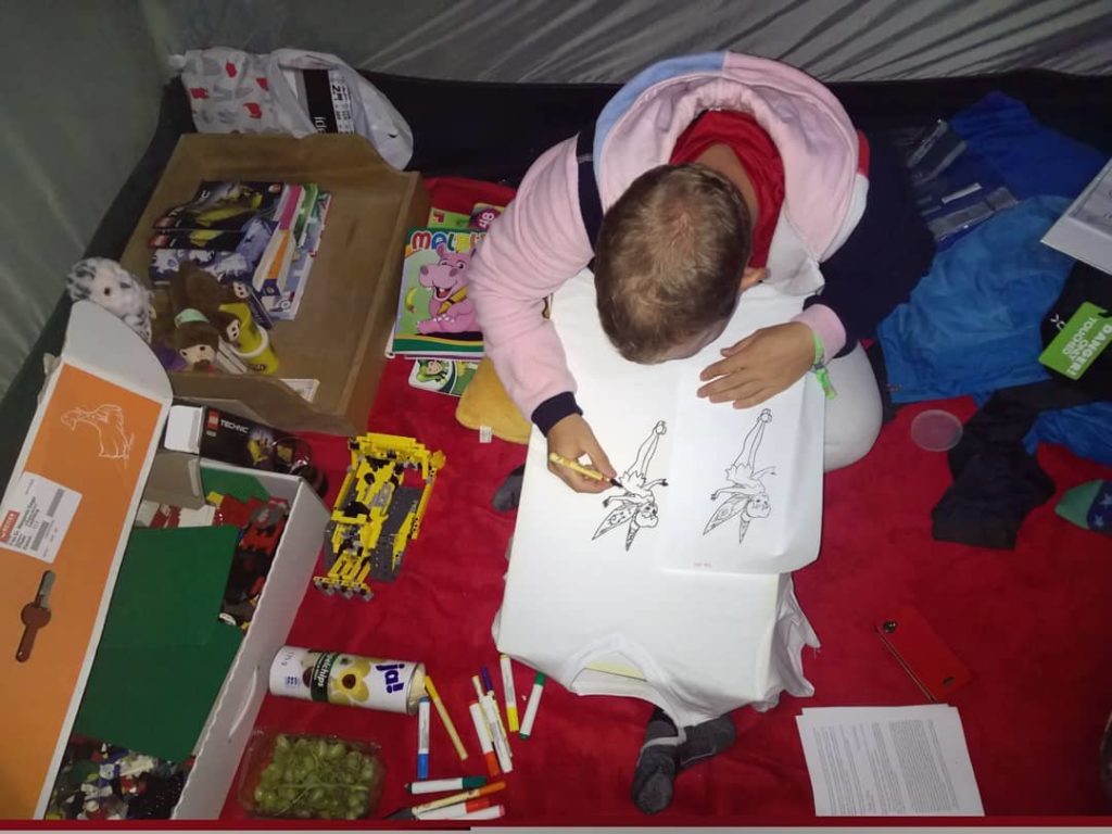 We were camping with eight Littles in Austria🏔️. There were some sleeping tents🏕️🏕️🏕️ and a big one⛺ which was only for playing🎠🎡🌈