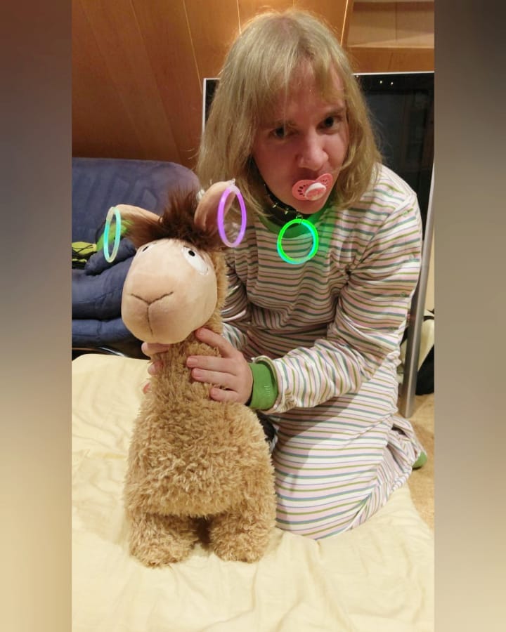 Look what a good girl i always am😇🎀. My lil sister took care of me last night and decided i have to wear a diapie.🚼